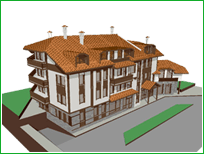 The subject of this project concerns the building of the RAMADA Apartment House in the town of Bansko. It will be located in the foothills of the Pirin mountain, in immediate vicinity to the Glazne river, on the Glazne street – the busiest street in town, at a three-minute distance from the town’s historical center, and just two minutes away from the cable car and will be commanding a perfect view of the mountain. The RAMADA complex will have open space around, not suffocated by neighbouring buildings.Its front fa?ade will be overlooking the Glazne street, on one side will be flanked by the river, the other- by another street, and the southern side will be adjacent to a two-storey house.